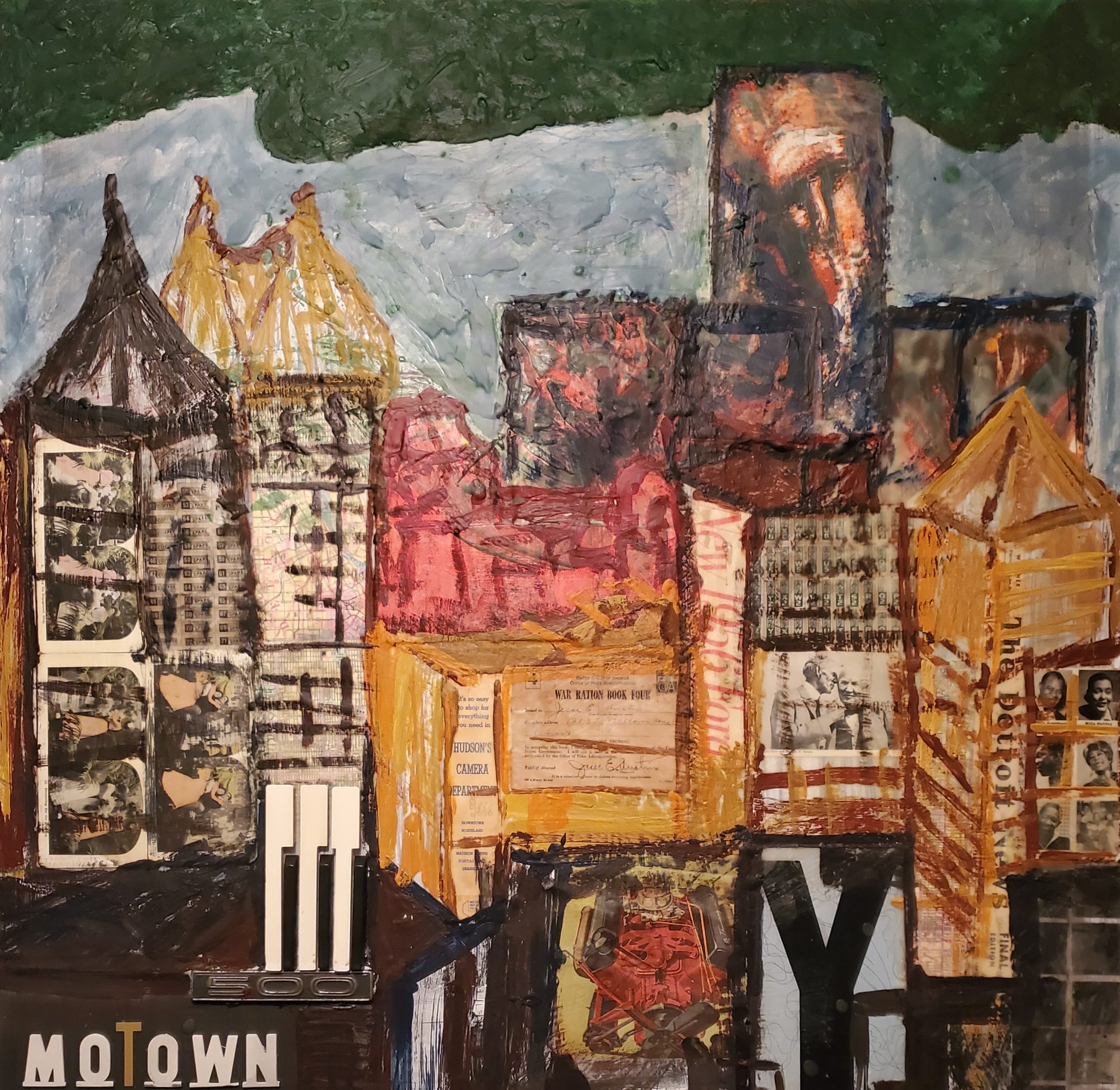 I love creating rich texture and tones with wax, oil paint and layers of printed or metal materials. The repurposing of old wax, paper, metal including my old lithographs allow me to build rich layers of colour, texture and graphic juxtapositions. My current body of work depicts our constant evolution as a culture. Through the heavy textures and unique vintage elements, I look to communicate the many layers of history we are connected to through the universal energy we feel in cities around the world.