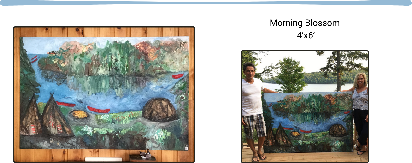 Morning Blossom is a 4’x6’ encaustic piece I did for Cindy and Mark’s beautiful retreat in Huntsville, Ontario in the breathtaking Muskoka region in Canada. They chose to honour the indigenous history of their property and surrounding area. The objects and papers used are a reflection of the area and their passion to share their love of the nature and health. It captures the amazing, timeless view of the water and landscape you see every day. The magic in the reflection of the trees on the water is the inspiration in creating a piece that connects to our past as well as our roles in the future.